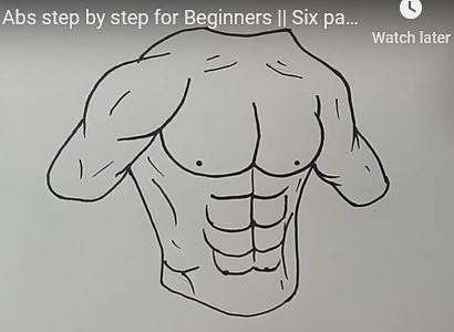 This image showcases a simple, clear sequence on drawing a detailed male torso, focusing on muscles like abs, chest, and arms, ideal for aspiring artists learning to draw anatomy and muscle structure in their art projects.