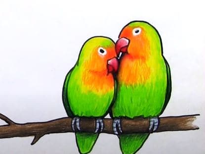 Lovebirds Drawing Step by Step Tutorial
